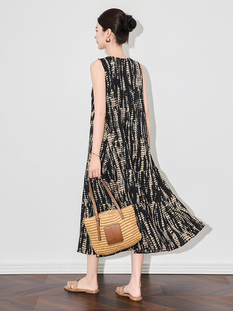 Fashion Elegant Tie Dye Striped Dress For Summer Women's Plus Size Clothing Sundress Loose Sleeveless Vest Dresses