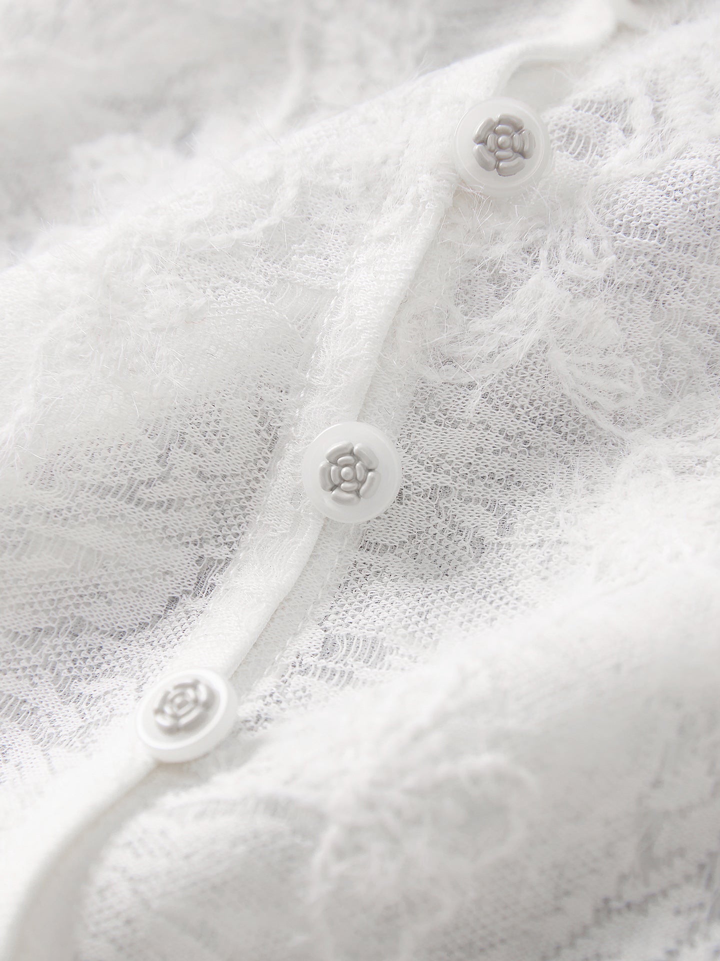 Fashionable High-End Women's Long-Sleeve Lace Shirt Hollow-Out Design Slimming Cardigan Stylish Trendy Top for