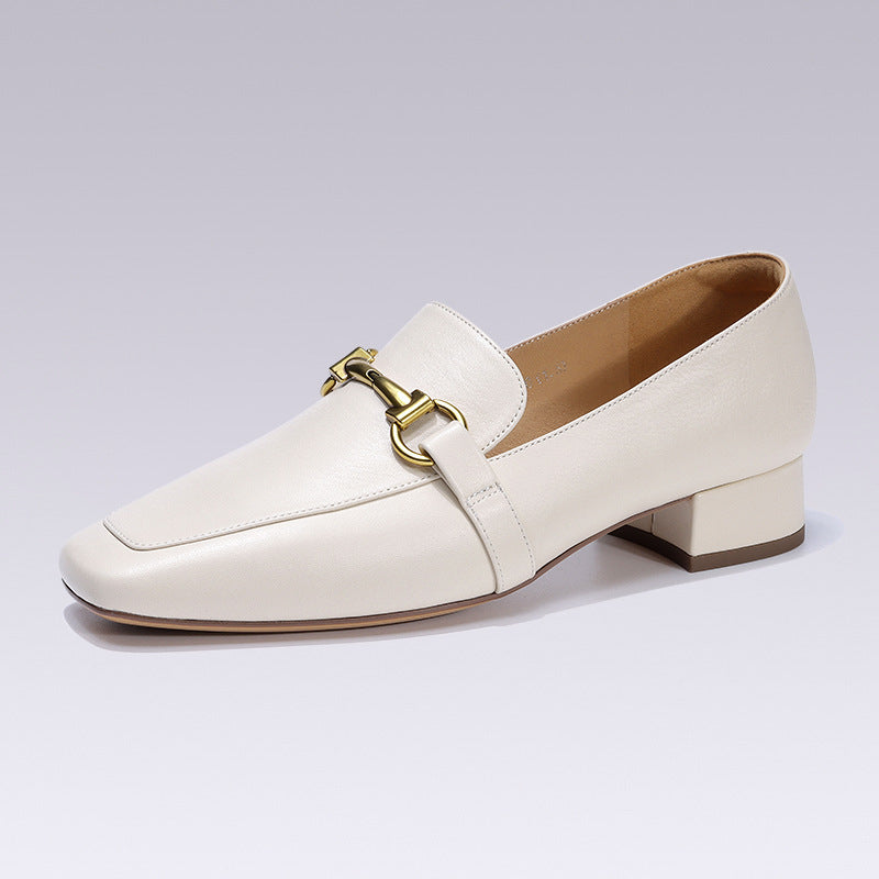 Large Size Loafers Black Classic Loafers Horsebit Decorated Round Toe Thick Heel Shoes