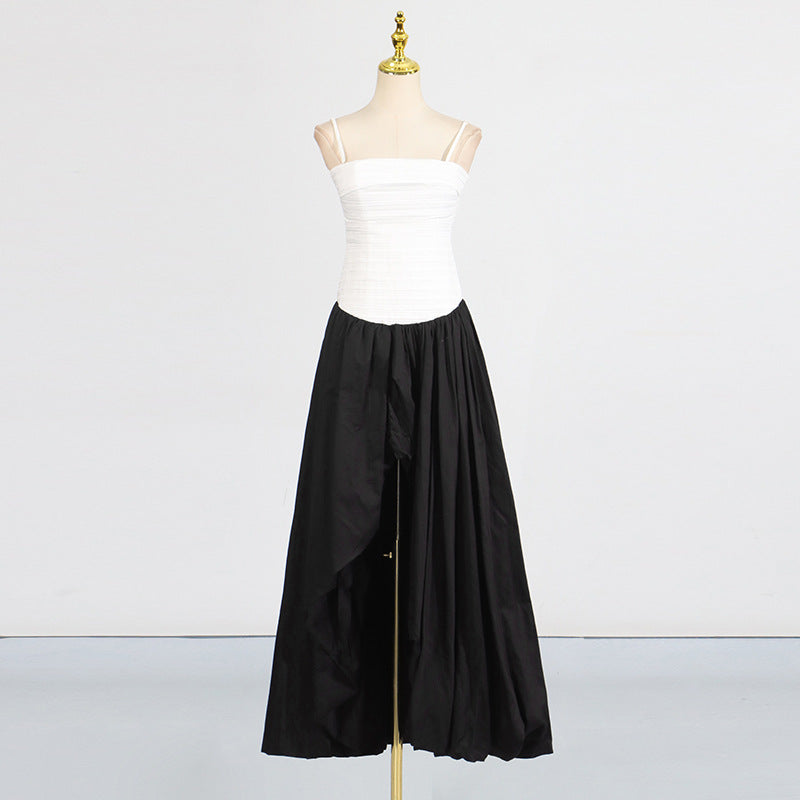 Sexy Strapless Printed Split Deign Long Bubble Dress Women Sleeveless Backless High Waist Patchwork Dresses Evening Party