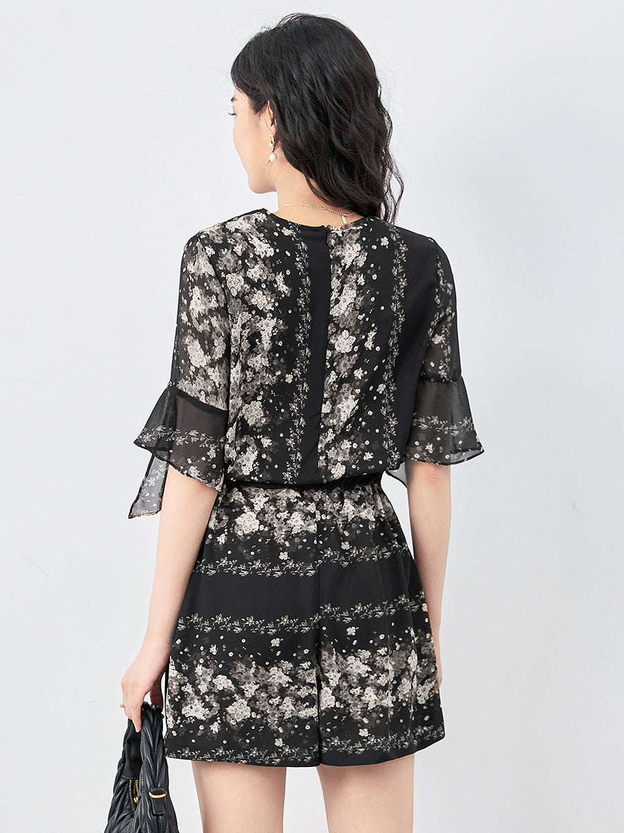 Slim Fit V-Neck Button-Up Long Sleeve Floral Base Shirt Vest Two-Piece Set for plus Size Women Elegant Retro Style Slimming