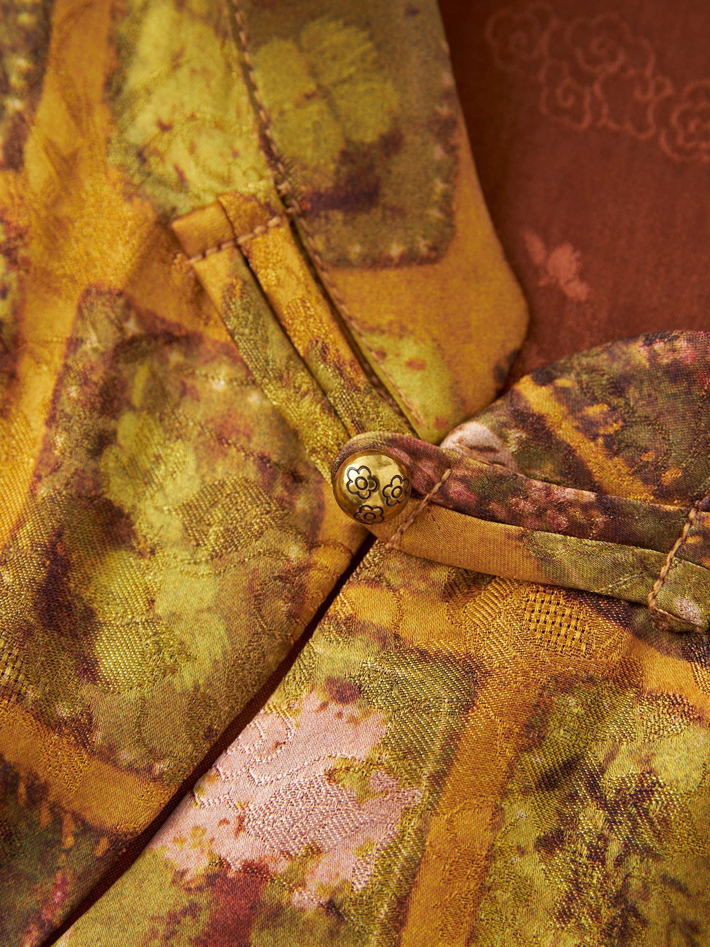 Summer Fashion Women's Blouse New Chinese Style Vintage Print Rayon Xiangyunsha Fabric Short Sleeve Elegant Top