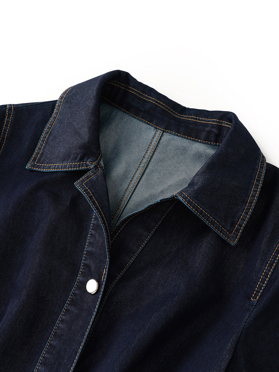 Summer New Women's Casual Fashion Single Breasted Collar Short Sleeve with Belt Midi Cowboy Medium Length Dress