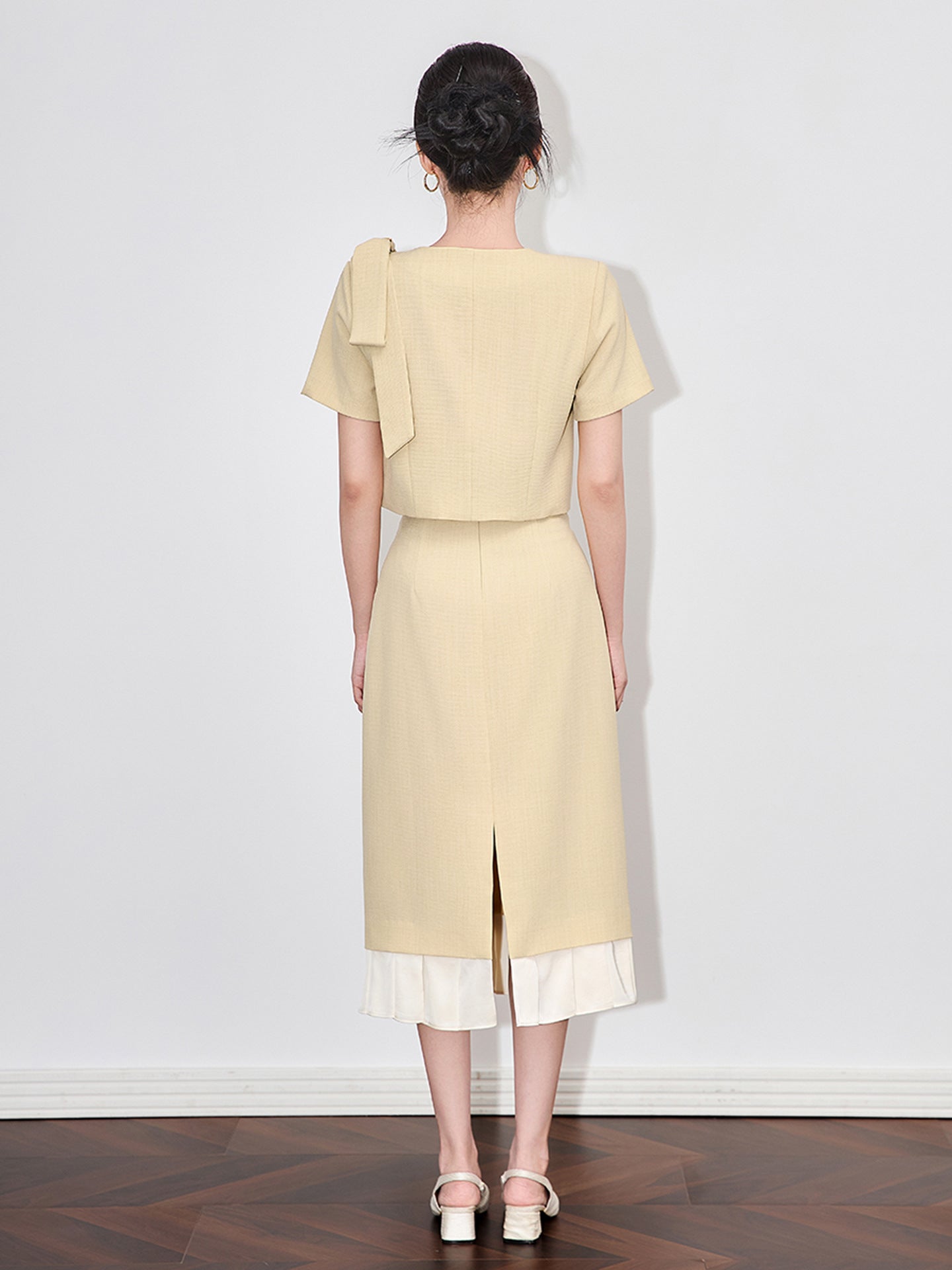 Summer Pink Dress Sets Women Elegant Short Sleeve Ruffles Patchwork Top and Pencil Skirt Suits Two Piece Outfit Office