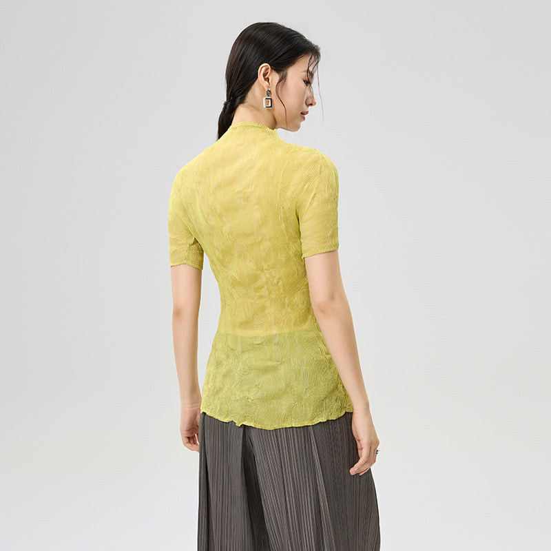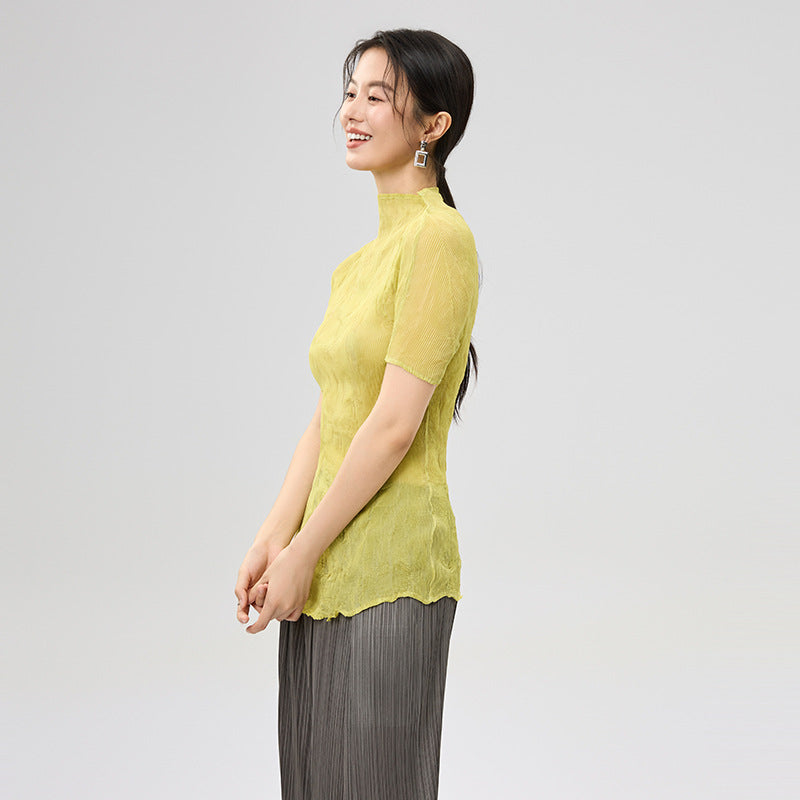 Women's T-shirt Summer High-End Feeling Three-Zone Sleeveless Design Sense Polyester Fiber Short Sleeve