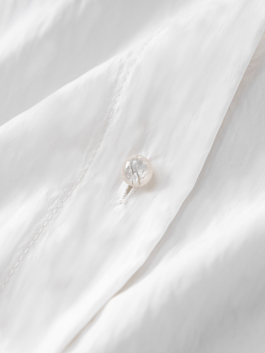 Women's White Button Down Shirt Long Sleeve Loose Fit Blouse Elegant Mid Length Top with Lace V Neck for Work Casual